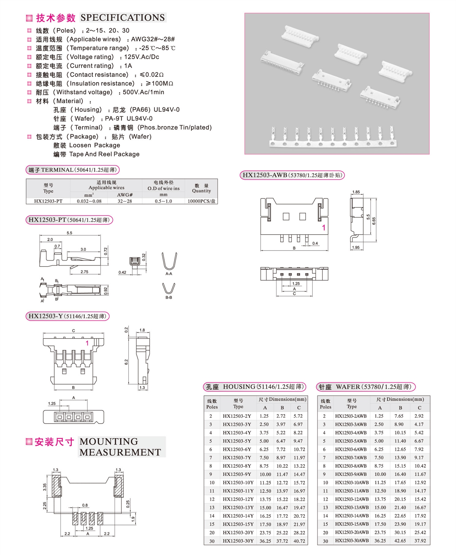 上城HX12503-(1.25超薄 SMT/51146、53780)- 贴片式连接器(1.25mm)